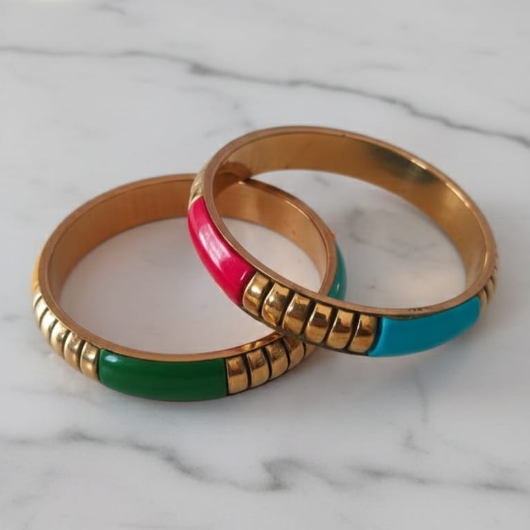 - This is resin bangles set with brass designed by cion jewellery. It has different sizes and multi color,it is very beautiful and antique bangles set. It is very stylish bangles set for girls and women. It is handcrafted bangle set. Women love jewellery,specially imitation jewellery.This is imitation bangles set. They wear it different occasion.They specially wear it in party,wedding,office,festive. They can also wear it on regular basics.