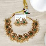 Traditional Antique Jewelry Elephant Pendant Necklace With Earring for Women & Girls | Choker Necklace Set |Imitation Jewellery Set (1 Set)