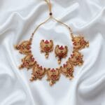 Premium Antique Finish – Gold-plated necklace set with a beautifully carved elephant pendant and matching earrings.